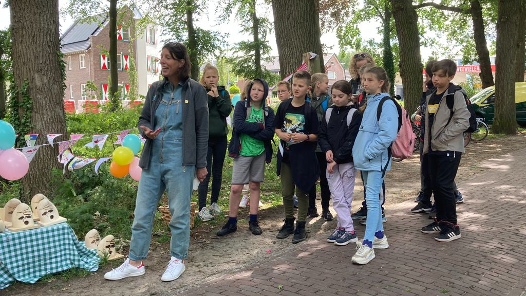 HOEVELAKEN - Woensdag 25 mei is voor de tweede keer, maar dan nu officieel, Het Laakse Pad Kids geopend. Dit is een klompenpad van 3 km dat door het Hoevelakense Bos loopt. Groep 7 van basisschool De Spreng voerde de openingshandeling uit, door het bord van het wandelpad, aan het begin van het bos, te onthullen.