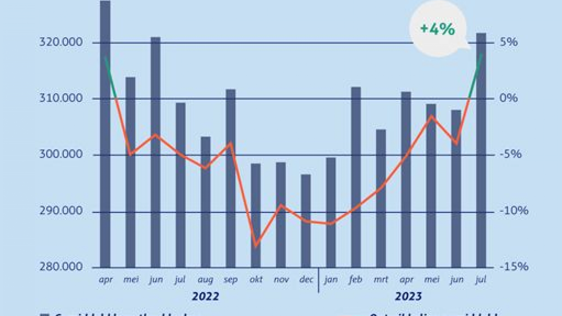 Na veertien opeen volgende maanden van dalingen is sinds juli een kentering te zien in vergelijking met dezelfde periode een jaar geleden. Het gemiddelde hypotheekbedrag lag de afgelopen maand op 321.818 euro: het hoogste niveau sinds april vorig jaar, blijkt uit cijfers van De Hypotheker. Dit wijst erop dat de woningmarkt zich ondanks de gestegen hypotheekrente geleidelijk herstelt.