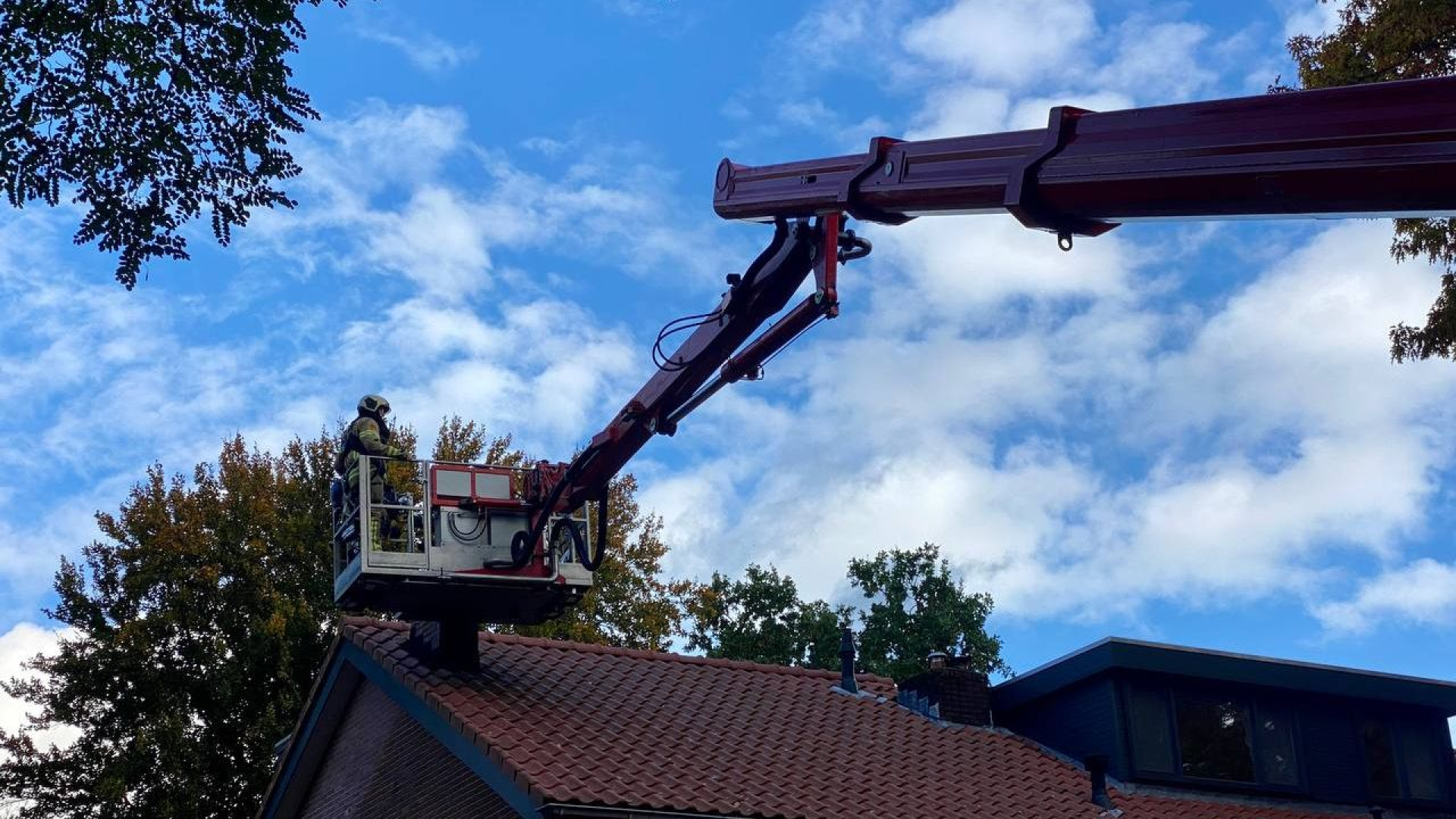 De brandweer heeft binnen de kachel leeggehaald en dat materiaal buiten in de voortuin uitgemaakt. Vanuit de hoogwerker konden ze vanaf de bovenkant de schoorsteen in om deze met een borstel schoon te maken.