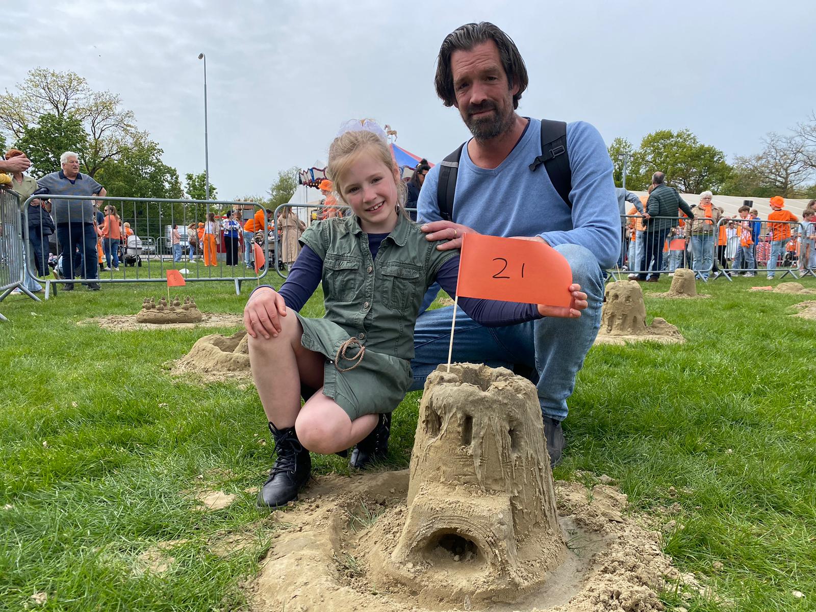 Een van de deelnemers doet samen met haar vader mee. Ze heeft een kasteel gemaakt met een gracht eromheen “Ik vind het heel leuk om te maken,” vertelt ze trots.