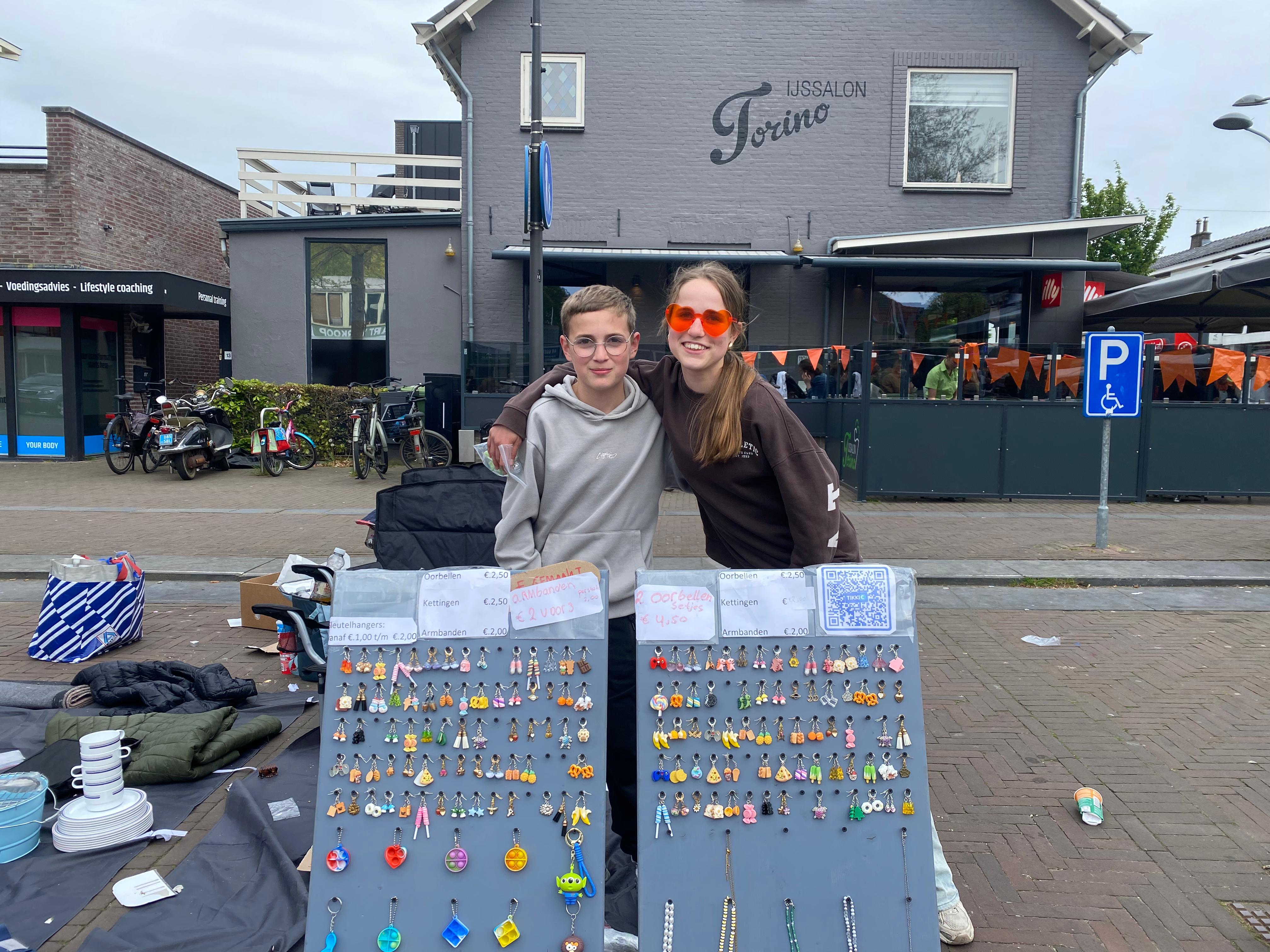 Sarah en Sem staan vandaag op de kleedjesmarkt in Ermelo. Zij verkopen daar zelfgemaakte sieraden.